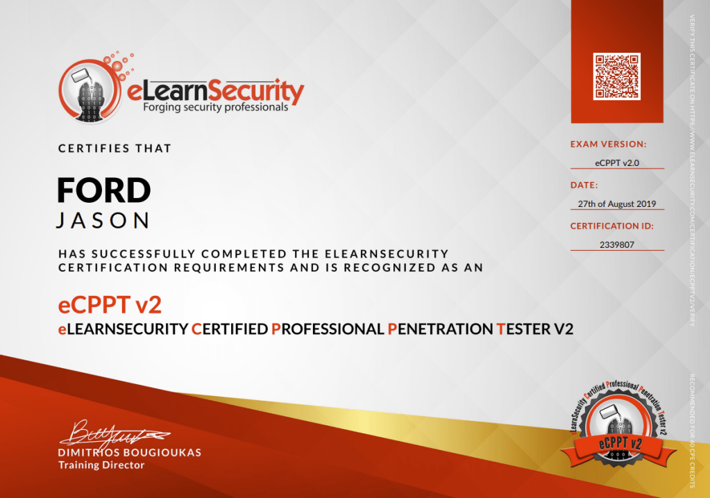 2018: eWPTX – Web Application Penetration Testing Extreme (INE)