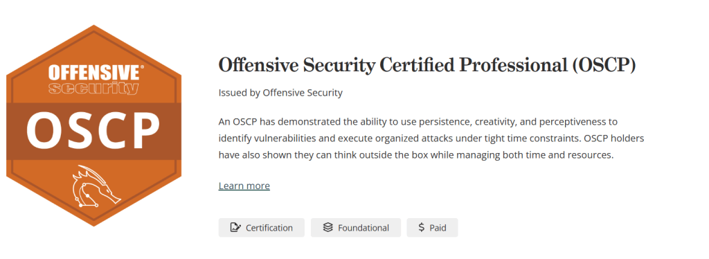 What more can I say? OSCP was the definitive certificate at the time. It pushed me hard and sharpened my skills. I wasn’t a fan of the “try harder” culture, but the process helped me develop a solid workflow and a deeper understanding of exploitation and post-exploitation.