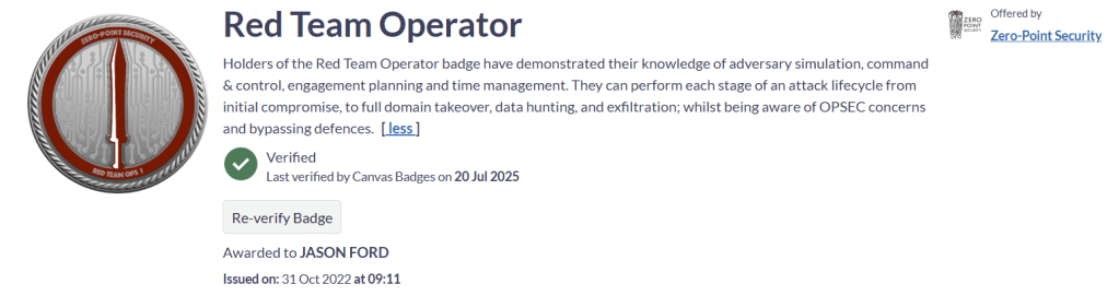 2022: CRTO – Red Team Operator (Zero-Point Security)
