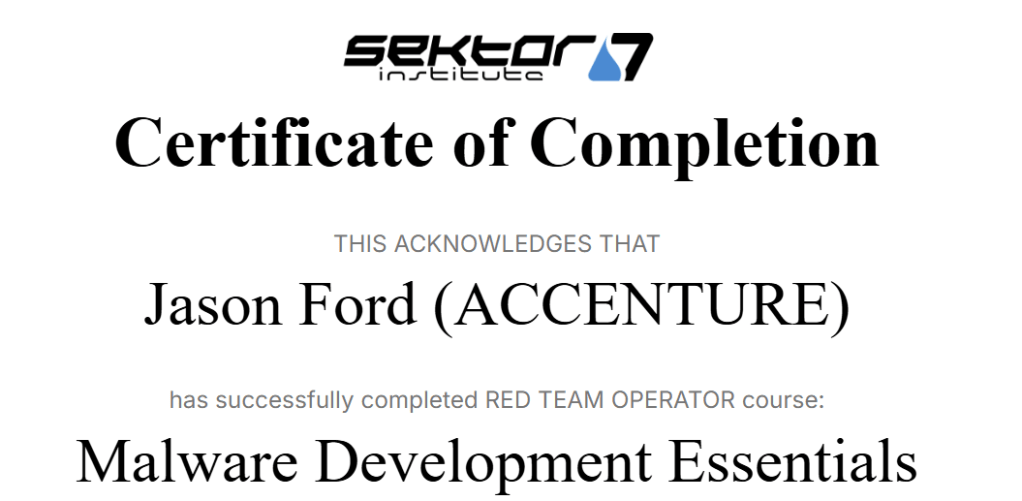 After years of working defensively, I wanted a formal perspective on blue team strategy. The course covered the essentials of defensive security. I didn’t learn a whole lot, but it was helpful to see how defenders structure their approach. The exam was basic and I passed without needing to study.